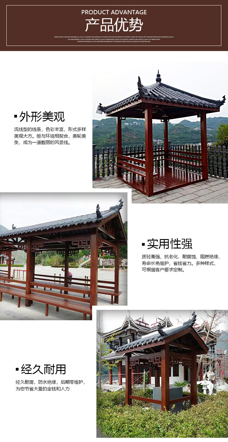 玻璃钢仿木廊亭,尺寸大小支持定制